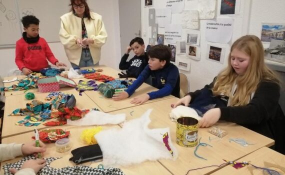 Les élèves de 5è curie ont débuté les travaux plastiques tout en réinterrogeant la peinture abstraite et en intégrant des broderies à une recherche plus formelle. Ce travail plastique mené par les élèves a un ancrage local mais fait écho, entre autre, à Matisse, Kandinsky ou Myriam Shapiro. Les élèves travaillent sur le motif. Ce motif initial est associé également à un processus de recouvrement par la peinture, par l’ajout d’éléments appartenant à d’autres répertoires graphiques (broderie, formes végétales ou organiques), le motif s’abstrait. Ce dernier est utilisé comme […]