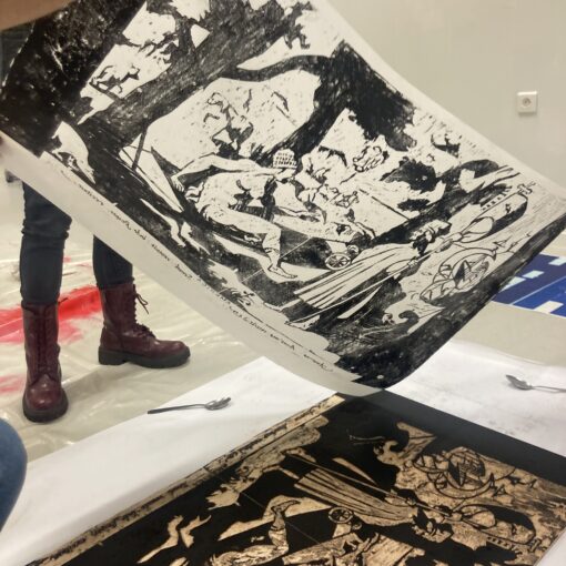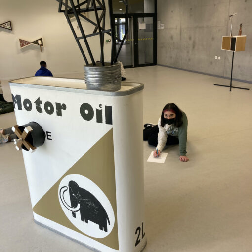 la 4e chaap a rencontré l’artiste au moment de l’installation, en effectuant un travail sous son impulsion certains élèves de 5e chaap (environ une dizaine) ont accueilli des élèves de la maternelle des Moulins pour deux visites atelier : en autonomie, les élèves ont encadré l’accueil, les explications et l’encadrement de l’atelier de pratique auprès des élèves. Les compétences développées à cette occasion sont riches et nombreuses.