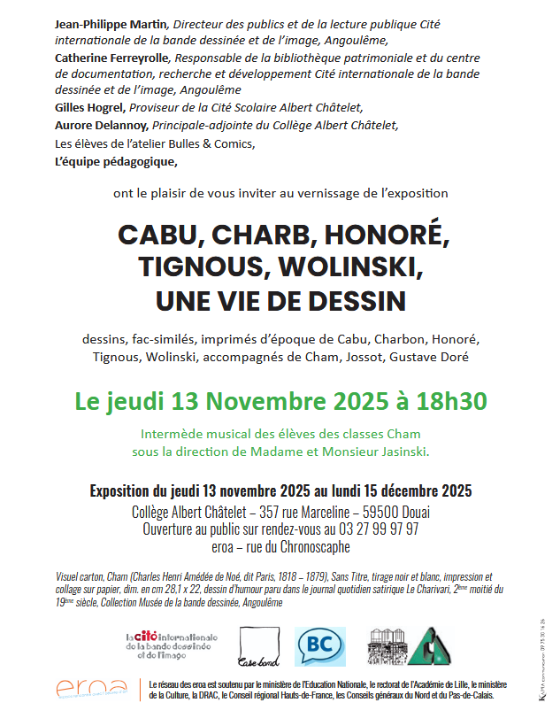 Accueil » Évènements » CABU, CHARB, HONORÉ,TIGNOUS, WOLINSKI,UNE VIE DE DESSIN- collège Albert Châtelet – DOUAI