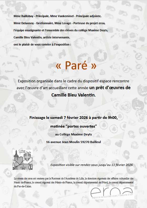 Accueil » Évènements » Camille Bleu Valentin – Paré – Collège Maxime Deyts – BAILLEUL