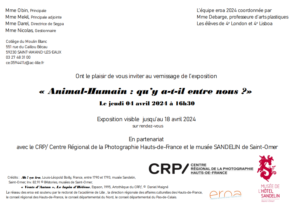 CRP/ Musée Sandelin – Animal Humain: qu’y a t-il entre nous ? – collège du Moulin Blanc – SAINT AMAND LES EAUX