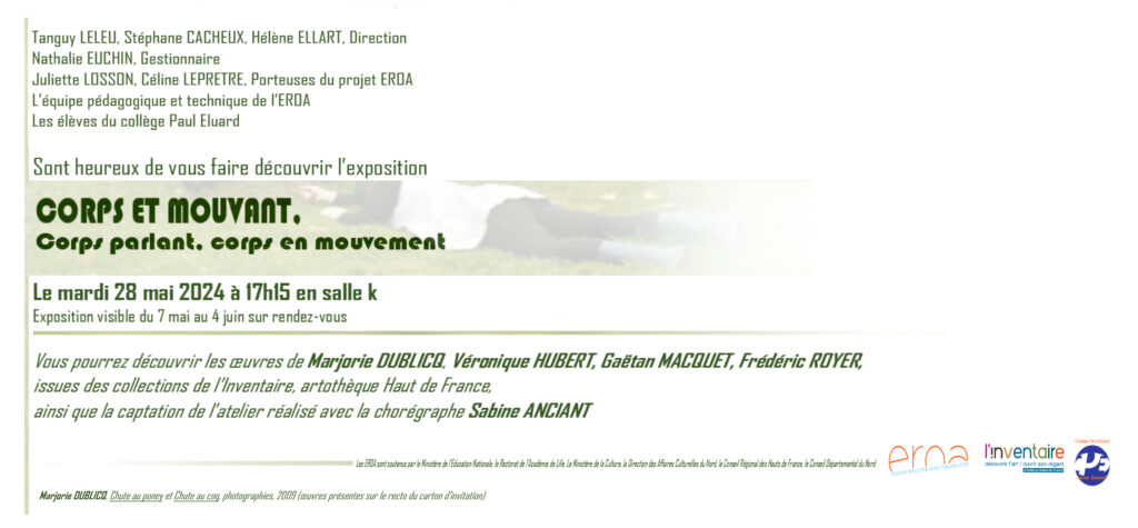 Accueil » Évènements » inventaire, artothèque – Corps et mouvant , corps parlant, corps en mouvement – Collège Paul Eluard – SAINT ETIENNE AU MONT