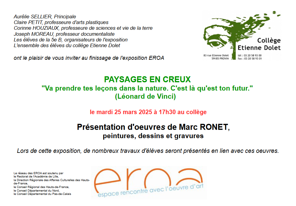 MARC RONET – Paysages en creux – Collège Etienne Dollet – PROVIN