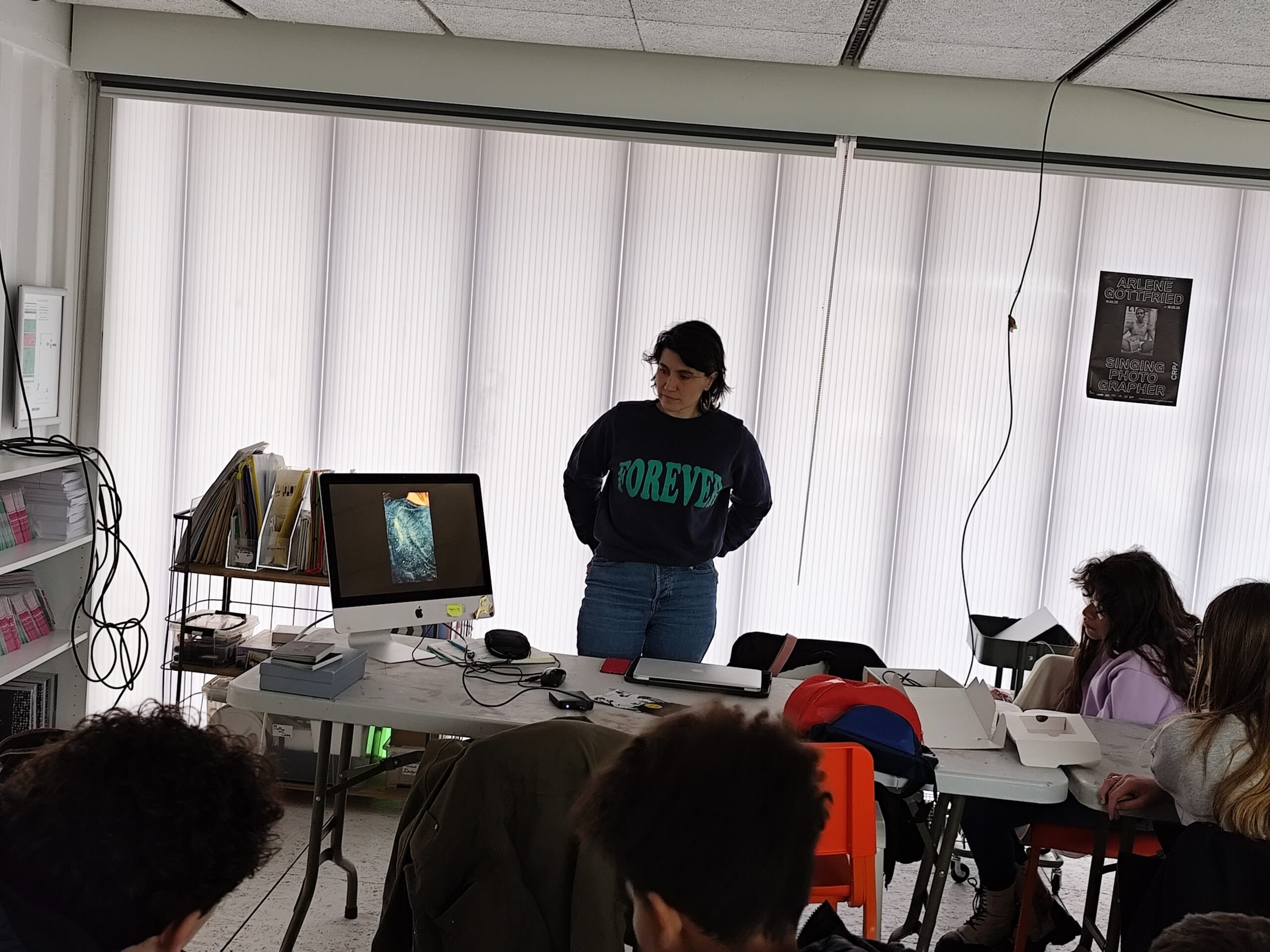 Préparée depuis plus d’un an avec une classe pilote de quatrième, l’exposition s’est tenue dans le centre de documentation du collège Lucie Aubrac, entièrement transformé pour l’occasion. Elle a permis aux élèves de découvrir des œuvres issues de deux institutions culturelles de la région, le MUba Eugène Leroy et Le Fresnoy de Tourcoing : des photographies de Marc Trivier, des cyanotypes de Rémi Guerrin, des gravures de Marc Ronet, ainsi qu’un film de l’artiste Bianca Dacosta. Les élèves ont également pu rencontrer et travailler avec l’artiste Hideyuki Ishibashi, qui a présenté plusieurs de ses œuvres, dont Atlas #6 (2021), une sérigraphie ayant particulièrement marqué le public, uniquement visible sous lumière UV.