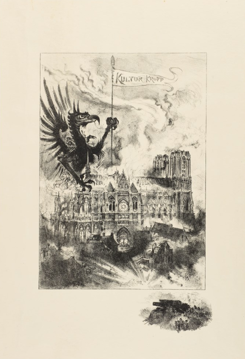 portraits déshumanisé et monstrueux de Gromaire ou l’aigle géant qui détruit la cathédrale de Reims d’Albert Robida.