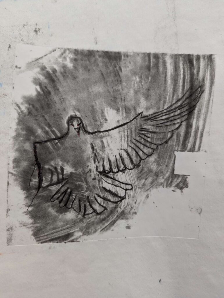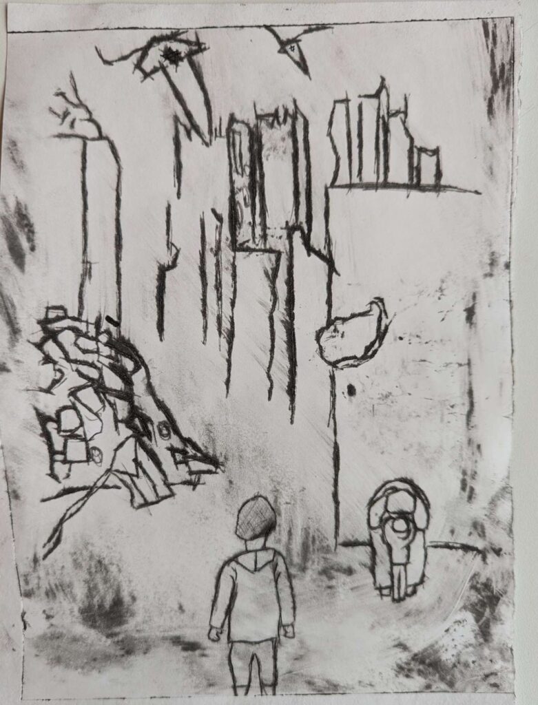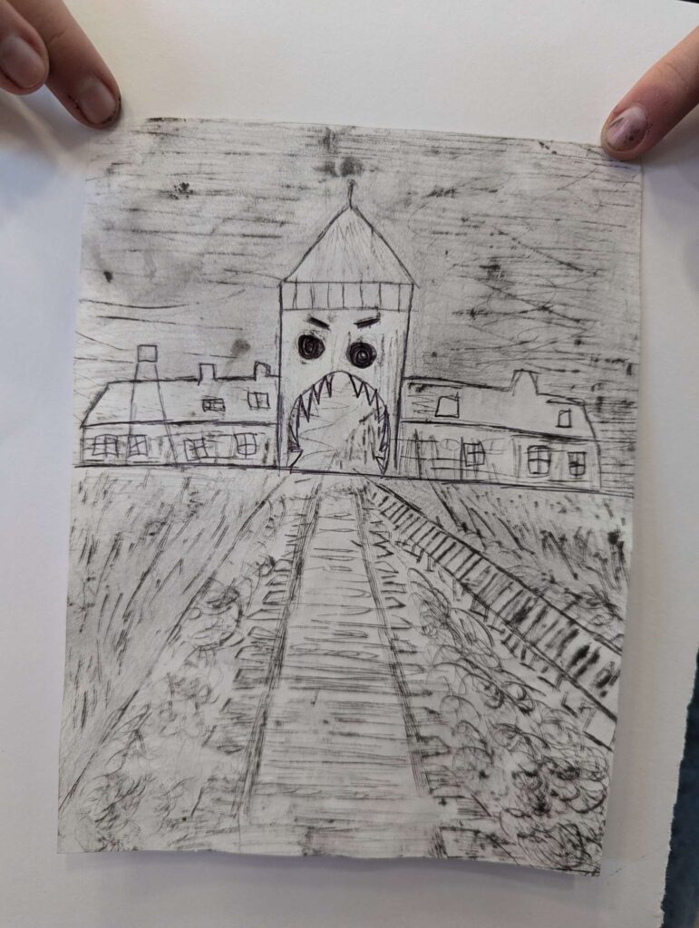 Au travers d’un EPI avec les cours de français, les élèves devaient « dénoncer les travers de la société » en axant leur intérêt sur un conflit en particulier (incluant les enjeux climatiques). Leur pratique n’était pas restreinte à la gravure mais certains se sont tournés vers cette technique. Ils devaient prendre en compte l’espace d’exposition. Leurs productions ont été présentées lors des portes ouvertes avec l’EROA (dans des pièces à part pour ne pas les confondre avec les œuvres). Leurs productions ont été accompagnées d’un texte explicatif pour clarifier les intentions et travailler ainsi sur les compétences théoriques.