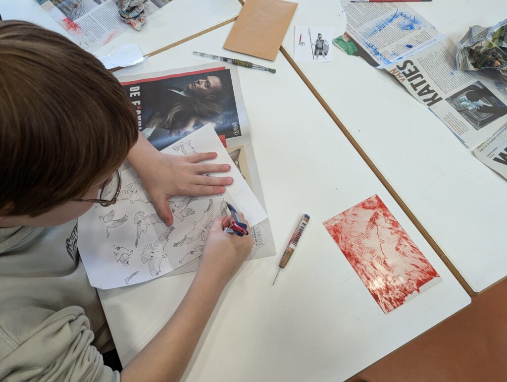 Les liaisons écoles – collège avec les écoles du secteur se sont bien déroulées. Elles ont été assurées par les élèves de différents niveaux du collèges qui ont proposé aux élèves de primaire un atelier de gravure et un atelier de médiation. Le fait d’avoir acheté une presse à graver a facilité la mise en place des ateliers de pratique.