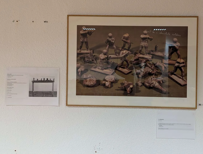 – une démarche surprenante avec le travail deux graveurs contemporains : Christian Zeimert (qui a eu recours à l’humour noir) et Micha Laury (qui a impliqué une sculpture en chocolat et l’intervention du public dans le processus de création de son estampe).
