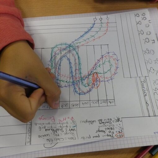 Le 27 mai à 8 heures, Séverine s’installe au collège où, cinq jours durant, elle construit son œuvre. Les agents lui prêtent des outils et lui rendent volontiers service. Elle est également assistée d’une jeune étudiante qui l’accompagnera durant les quatre jours de construction et qui réalisera un reportage photographique. Chaque jour, Séverine fait des allées et venues entre son atelier improvisé près du garage à vélos et le jardin devant lesquels tous les membres du collège passent pour entrer ou sortir.