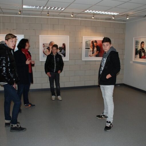 L’artiste a partagé son goût pour ces lieux à l’écart, pour sa vision décalée des choses avec les élèves du workshop, qui ont poursuivi avec elle le travail et la réflexion. Ils ont bénéficié d’une séance de prises de vue aux alentours du collège avec elle , et d’une autre pour les retravailler numériquement et utiliser artistiquement des enseignes lumineuses de la société de consommation pour d’autres fins que celles publicitaires cette fois. Ils ont pu exposer leur travail à leur tour lors du vernissage.